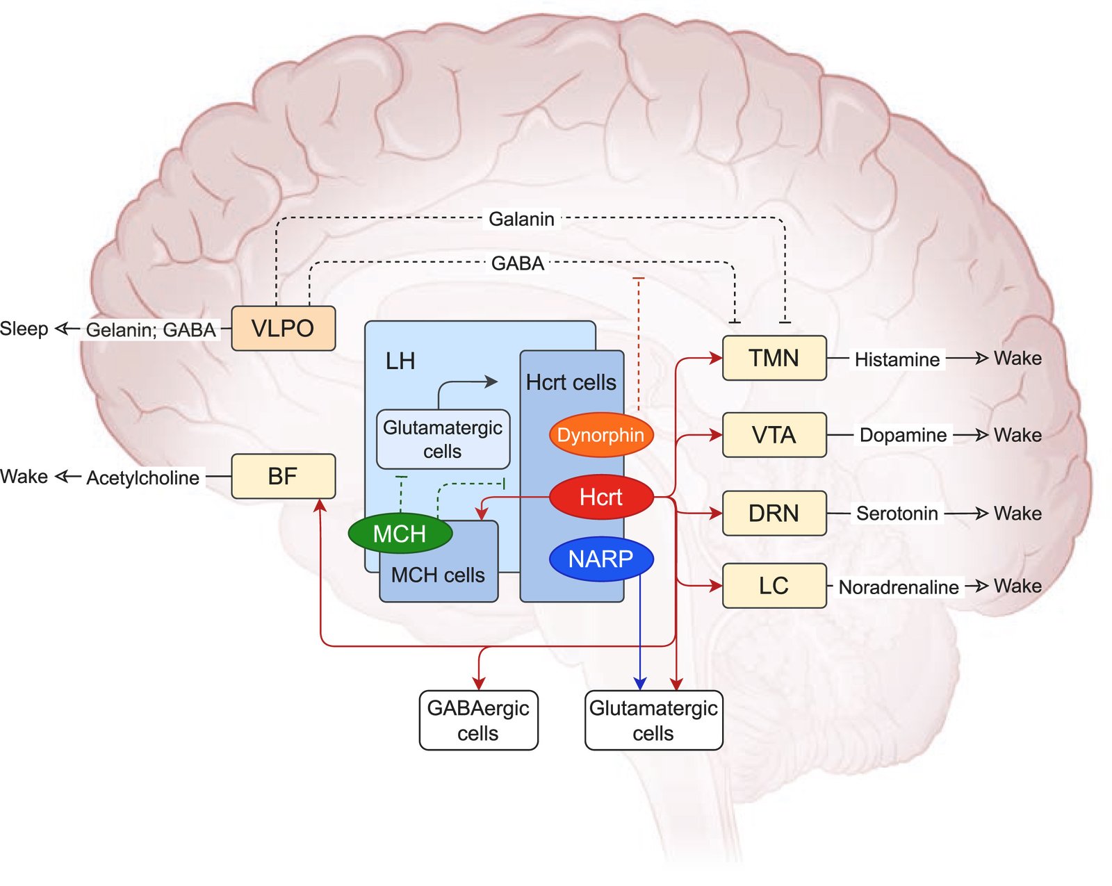 As discussed previously, hypocretin is a crucial neurotransmitter for stabilising wakefulness, and the deficiency of which is the causative factor behind type 1 narcolepsy with cataplexy, leading to sudden sleep attacks and muscle weakness.